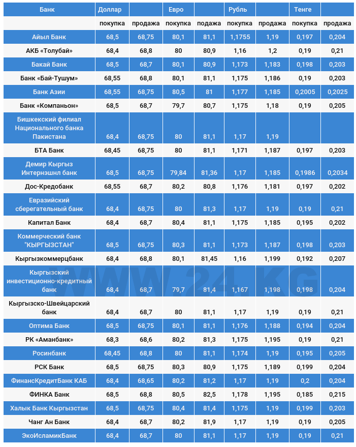 Курс доллара в коммерческих банках Кыргызстана на 28 сентября