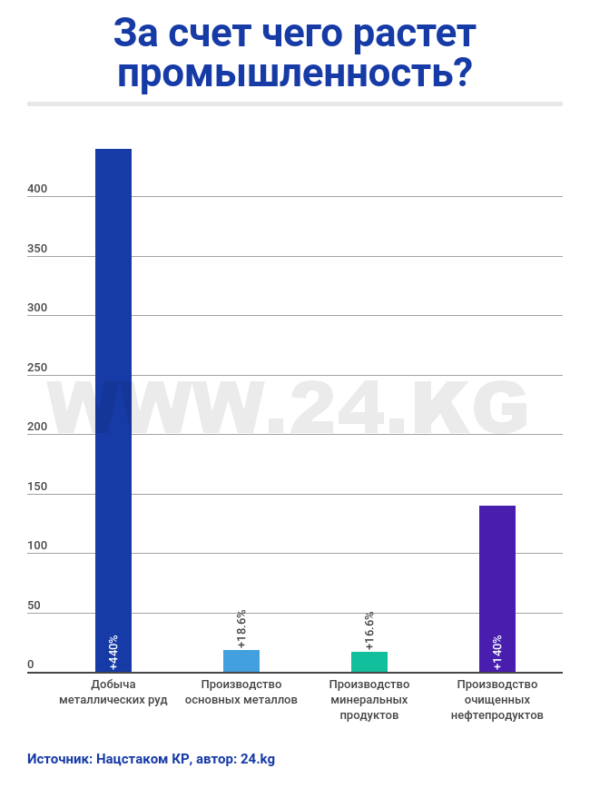 Без учета предприятий по разработке месторождения Кумтор данные положительные. Объем промышленной продукции составил 92 миллиарда сомов и вырос по сравнению с 2016 годом на 22,9 процента, с 2015-м — на 0,7 процента.