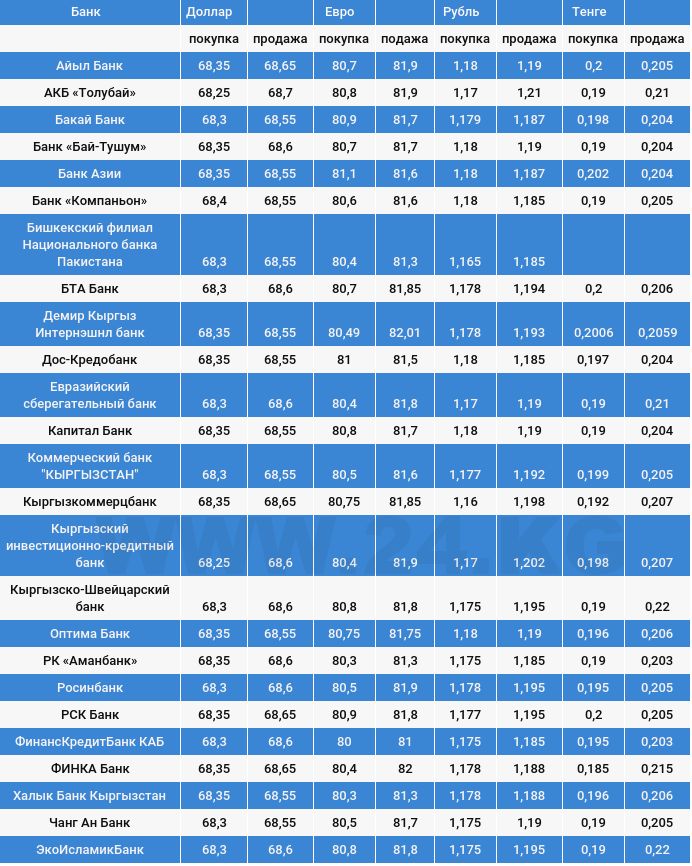 Курс доллара в коммерческих банках Кыргызстана на 12 октября