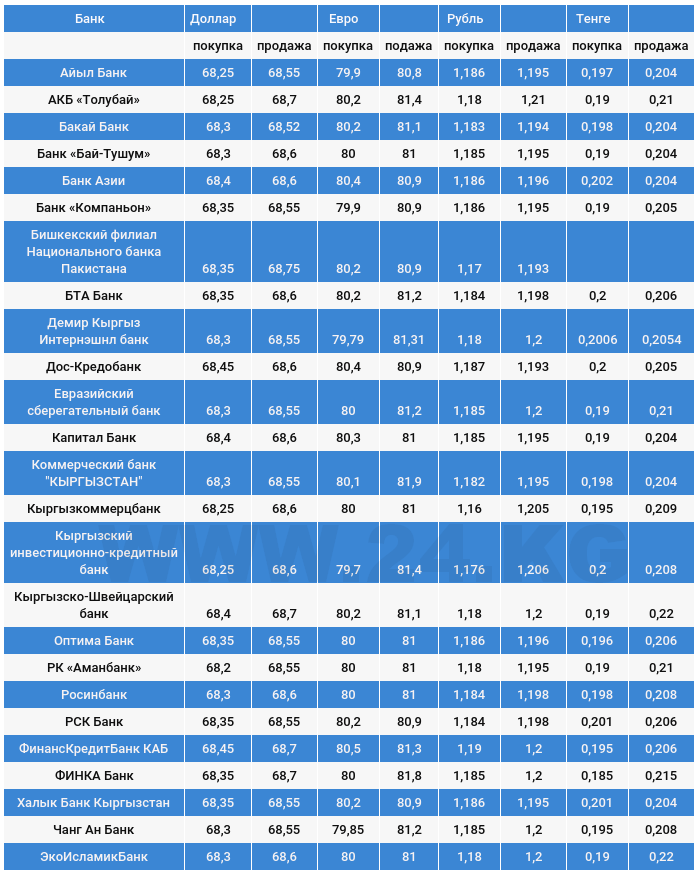 Курс доллара в коммерческих банках Кыргызстана на 24 октября