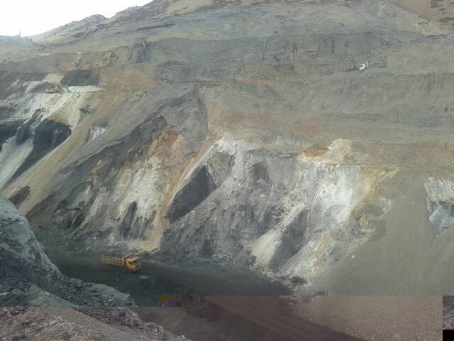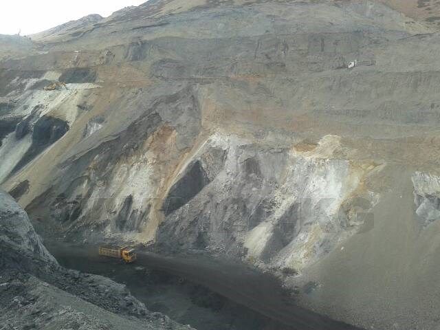 Два экскаватора, начиная с самой вершины, снимают слои глины и гравия, которые отвозят самосвалы: необходимо освободить находящийся под горой уголь. Работники месторождения говорят, что раньше добытчики не убирали верхние слои гравия и глины. Из-за этого часто происходили обвалы, под которыми гибли люди. Сейчас все меры предосторожности четко соблюдаются.