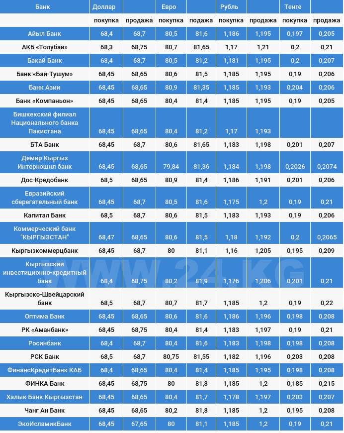 Курс доллара в коммерческих банках Кыргызстана на 26 октября