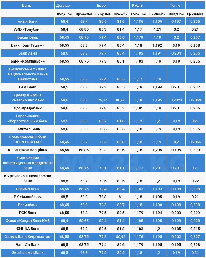 Курс доллара в коммерческих банках Кыргызстана на 27 октября