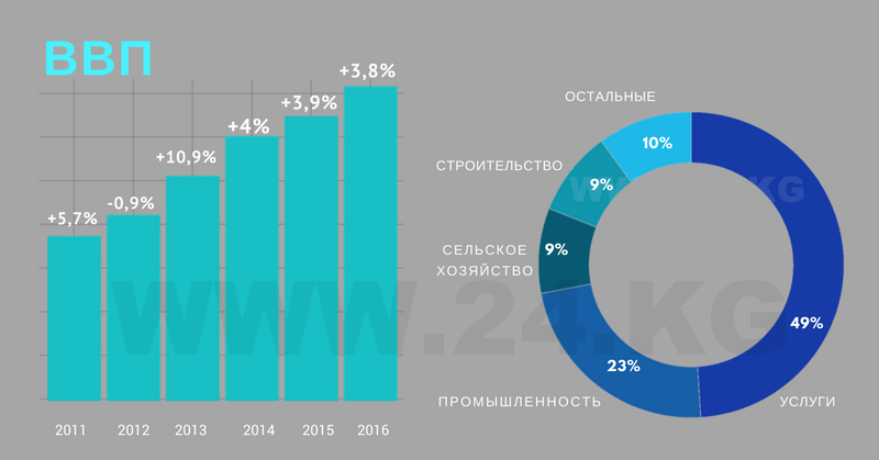 В 2015 году Кыргызстан вошел в ЕАЭС. Это должно было означать, что экономика республики перестроится. Стране надо было срочно уходить от реэкспорта и развивать производство. Однако данные за 2015-2016 годы говорят, что этого не произошло. В структуре ВВП по-прежнему львиную долю занимает сфера услуг.