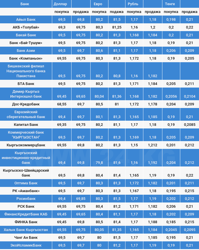 Курс доллара в коммерческих банках Кыргызстана на 9 ноября