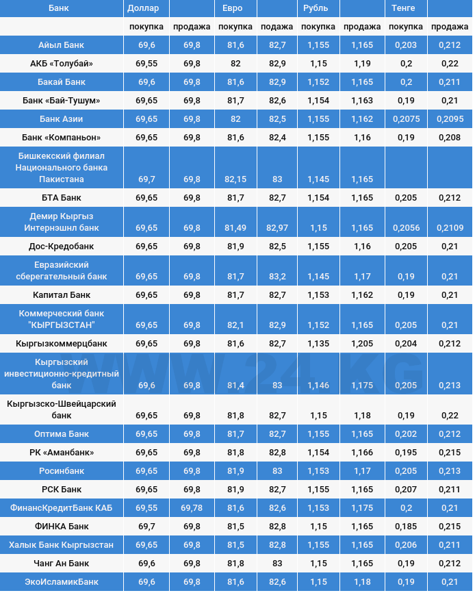 Курс доллара в коммерческих банках Кыргызстана на 16 ноября