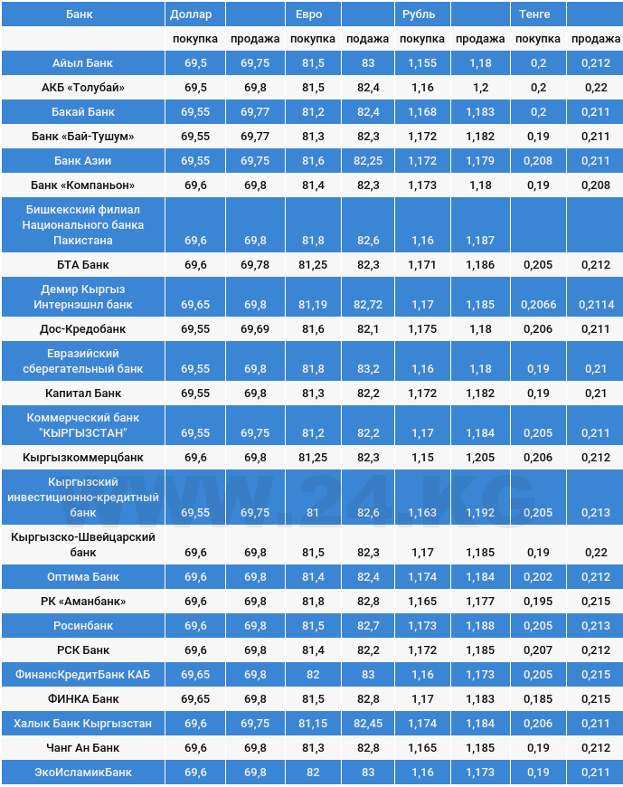 Курс доллара в коммерческих банках Кыргызстана на 20 ноября