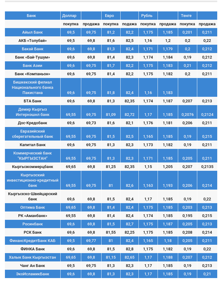 Курс доллара в коммерческих банках Кыргызстана на 22 ноября