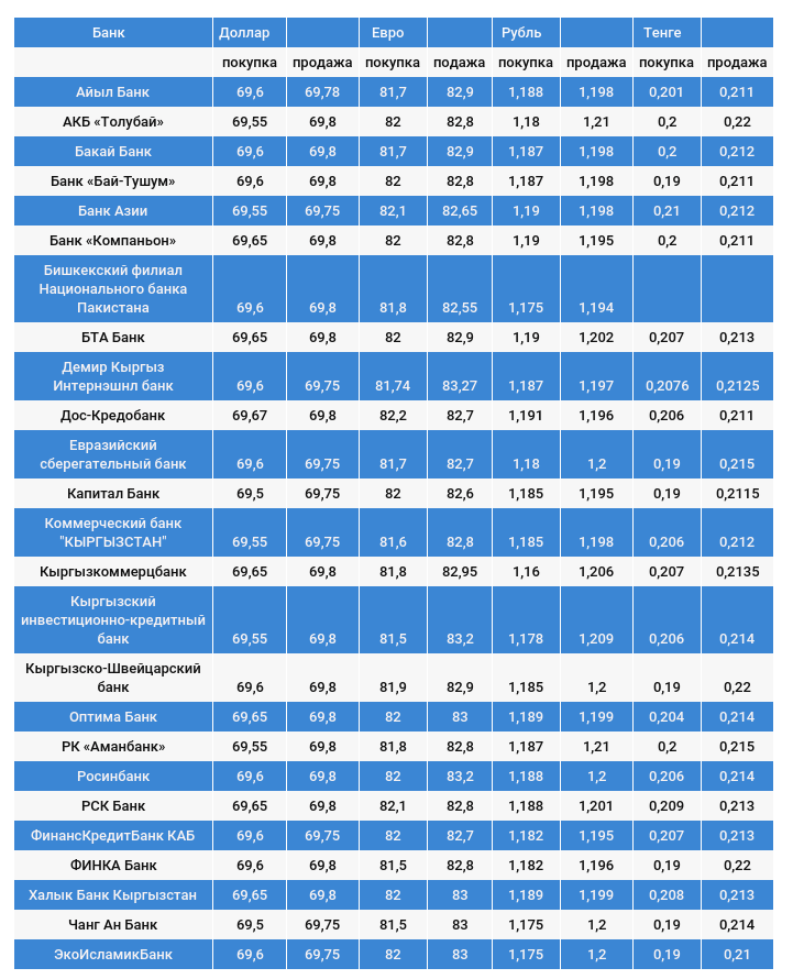Курс доллара в коммерческих банках Кыргызстана на 23 ноября