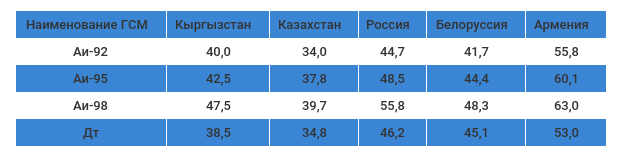 Цены на ГСМ в странах ЕАЭС