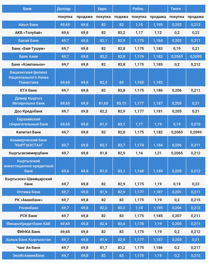 Курс доллара в коммерческих банках Кыргызстана на 7 декабря