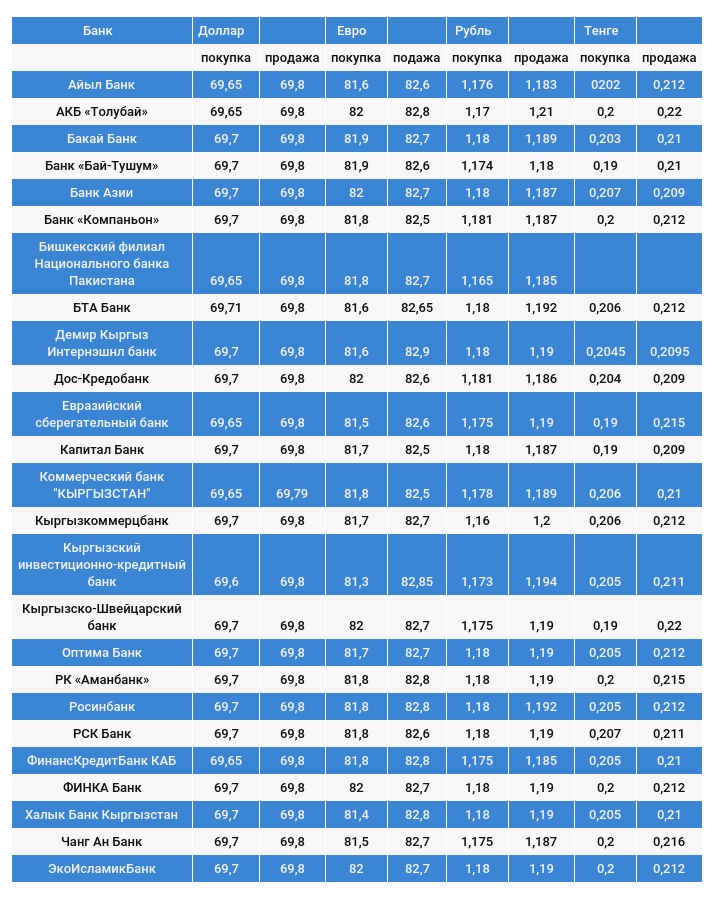 Курс доллара в коммерческих банках Кыргызстана на 12 декабря