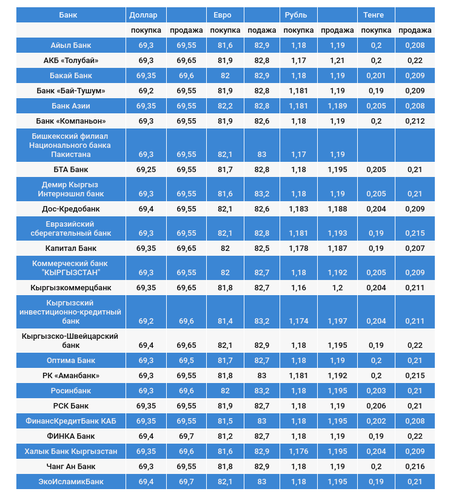 Курс доллара в коммерческих банках Кыргызстана на 22 декабря