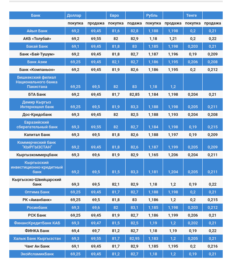 Курс доллара в коммерческих банках Кыргызстана на 26 декабря
