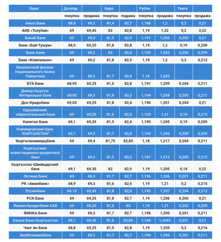 Курс доллара в коммерческих банках Кыргызстана на 28 декабря