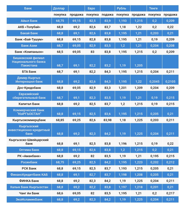Курс доллара в коммерческих банках Кыргызстана на 5 января