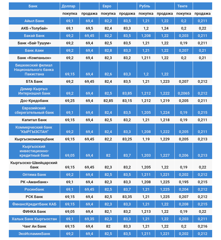 Курс доллара в коммерческих банках Кыргызстана на 11 января
