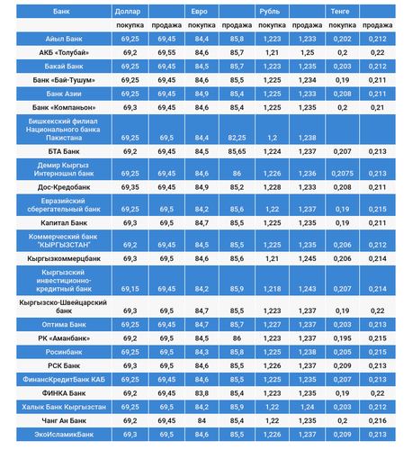 Курс доллара в коммерческих банках Кыргызстана на 16 января