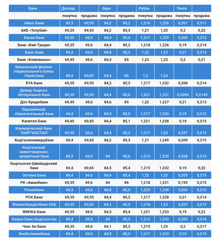 Курс доллара в коммерческих банках Кыргызстана на 19 января