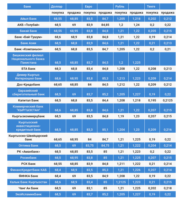 Курс доллара в коммерческих банках Кыргызстана на 23 января