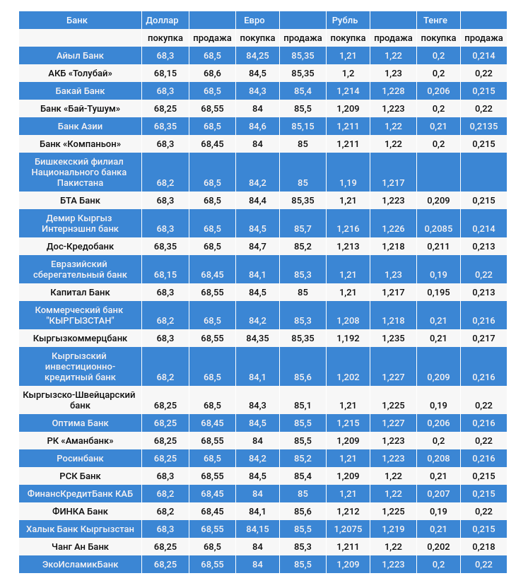 Курс доллара в коммерческих банках Кыргызстана на 31 января