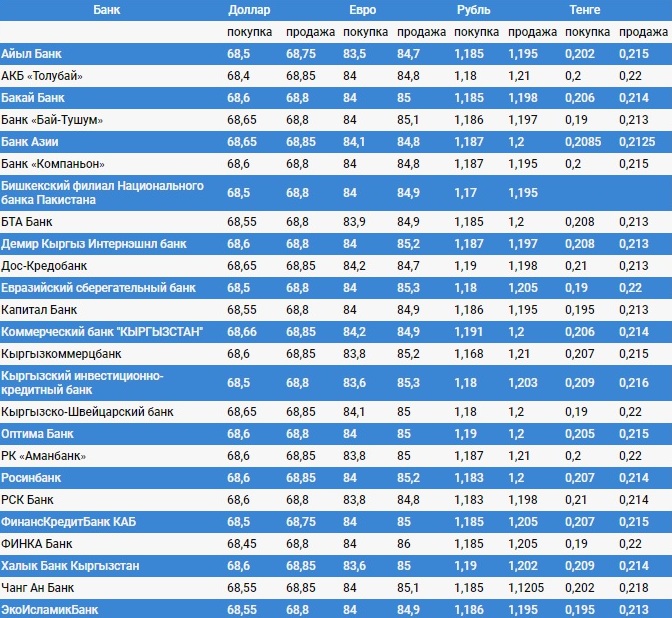 Курс доллара в коммерческих банках Кыргызстана на 8 февраля