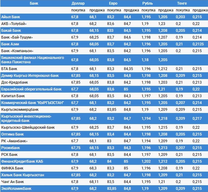 Курс доллара в коммерческих банках Кыргызстана на 21 февраля