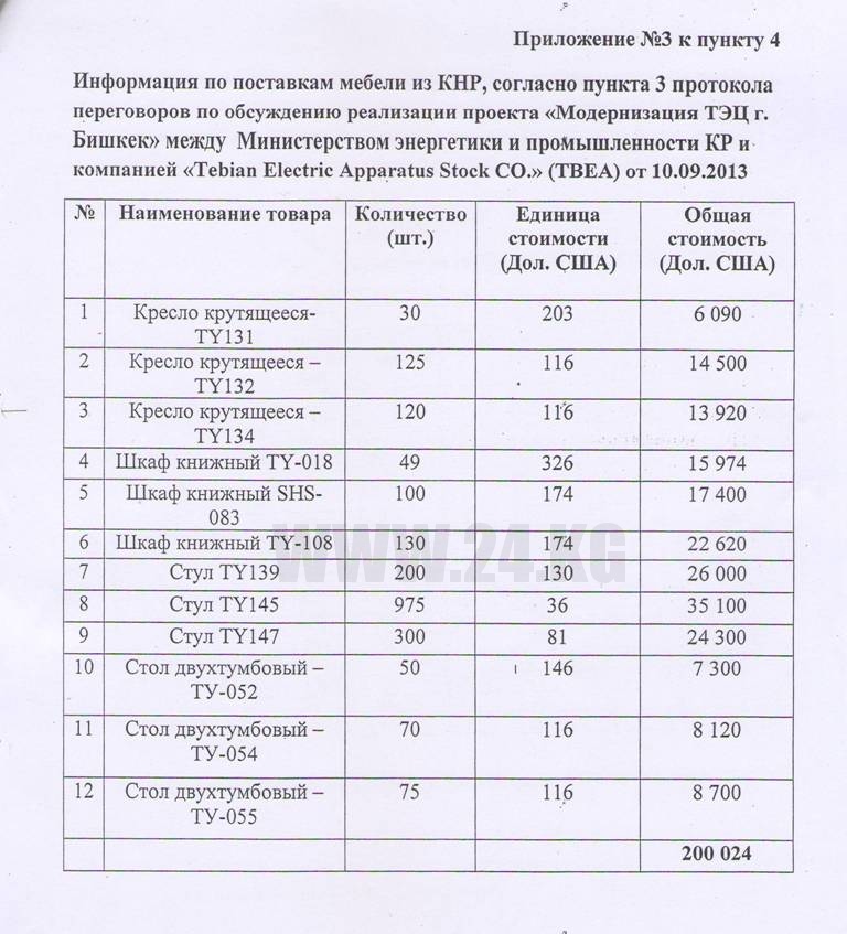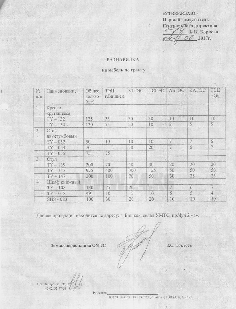 ОАО «Электрические станции» предоставили депутатам разнарядку по купленной на китайский грант мебели. Всего потратили $200 тысяч.