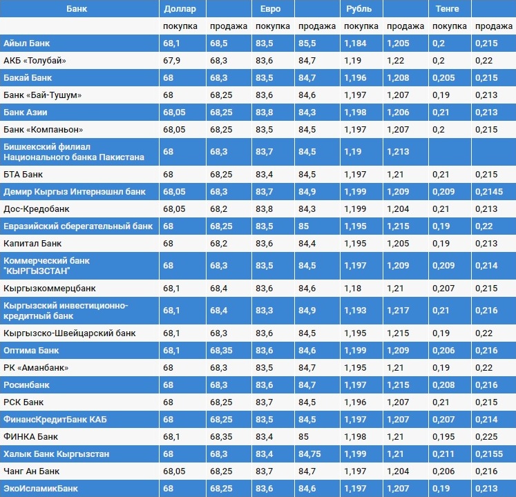 Курс доллара в коммерческих банках Кыргызстана на 12 марта