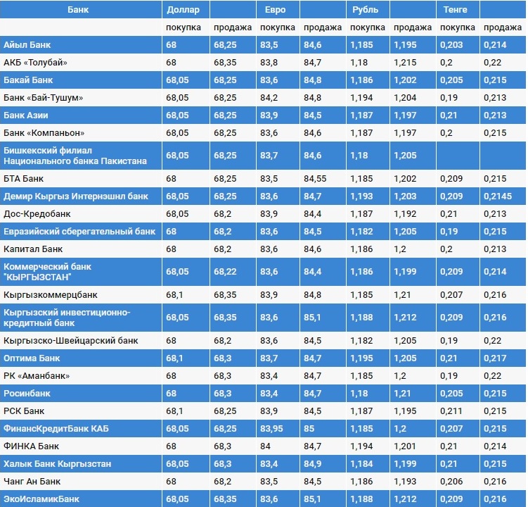 Курс доллара в коммерческих банках Кыргызстана на 23 марта