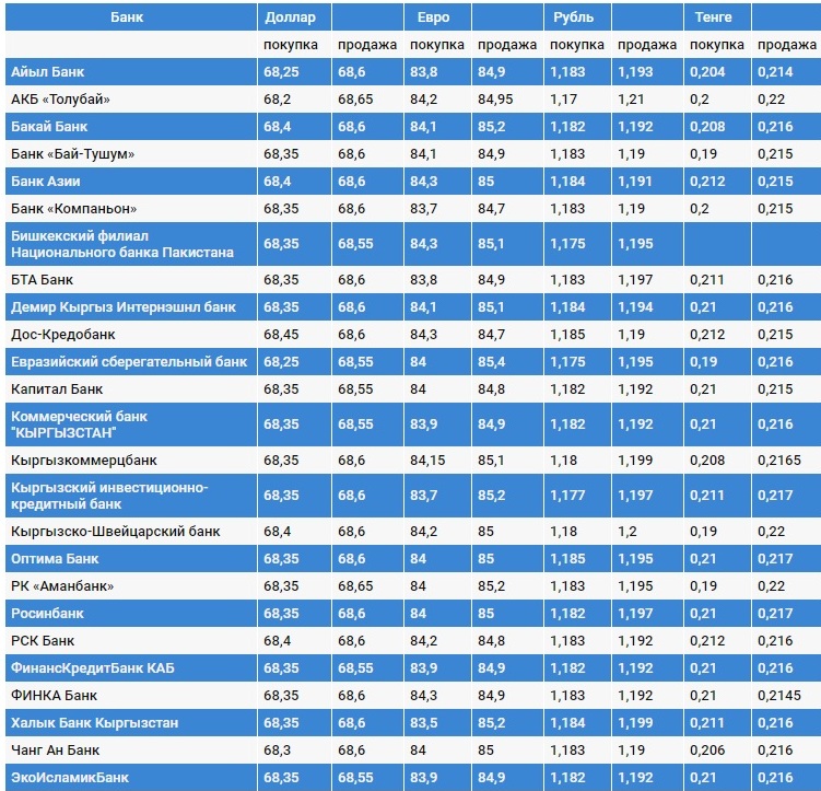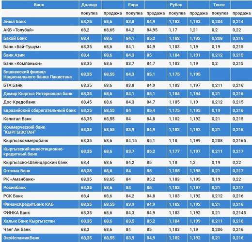 Курс доллара в коммерческих банках Кыргызстана на 29 марта