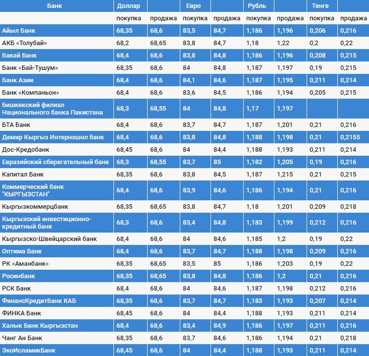 Курс доллара в коммерческих банках Кыргызстана на 4 апреля
