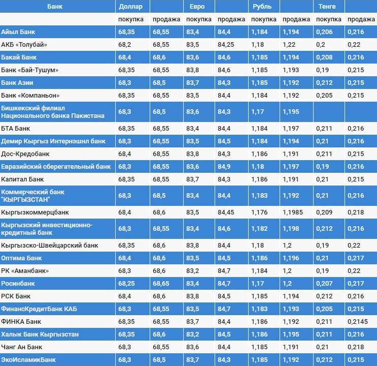 Курс доллара в коммерческих банках Кыргызстана на 6 апреля
