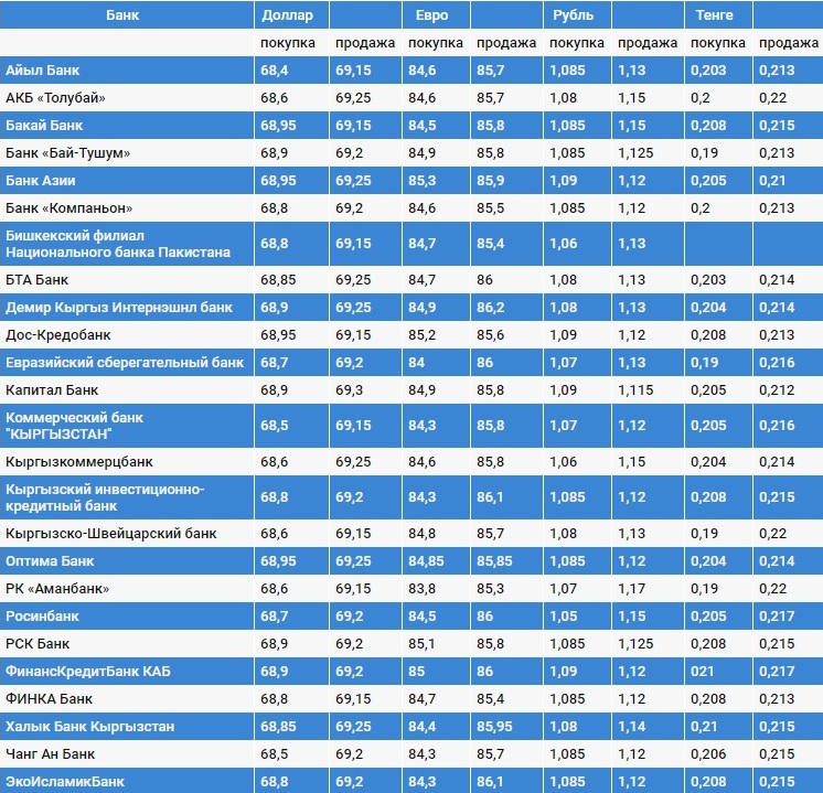 Курс доллара в коммерческих банках Кыргызстана на 11 апреля