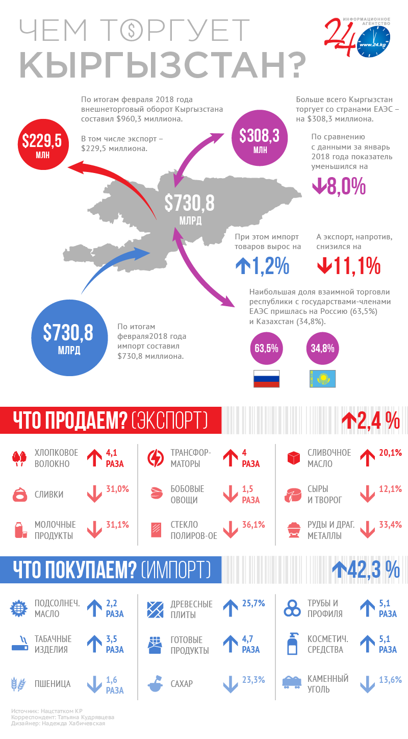 Национальный статистический комитет представил итоги развития экономики Кыргызстана в первом квартале 2018 года. ВВП страны растет, но и дорожают продукты питания.