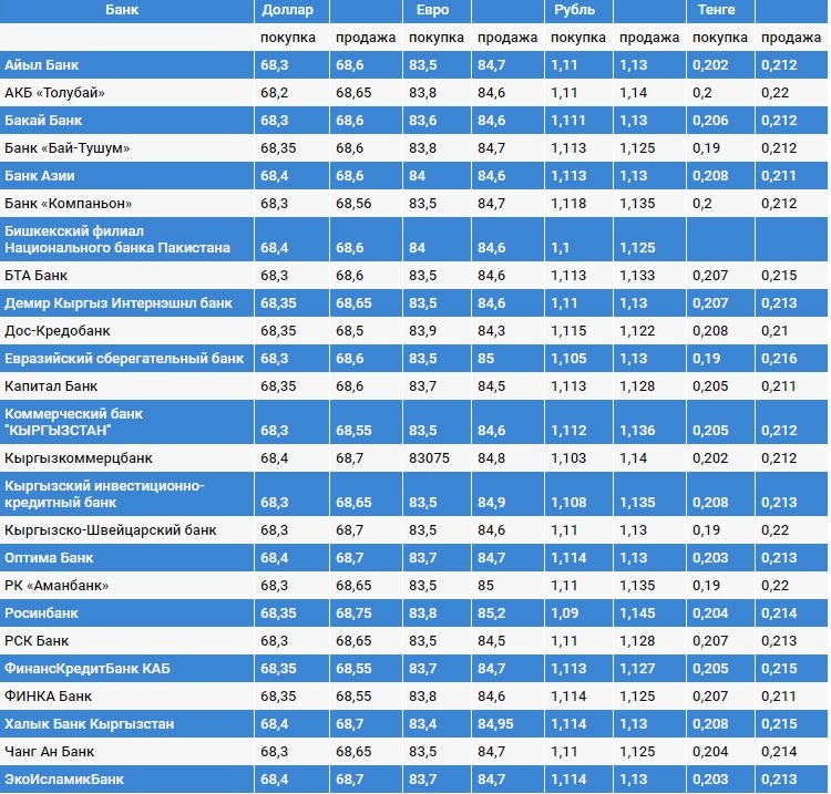 Курс доллара в коммерческих банках Кыргызстана на 23 апреля