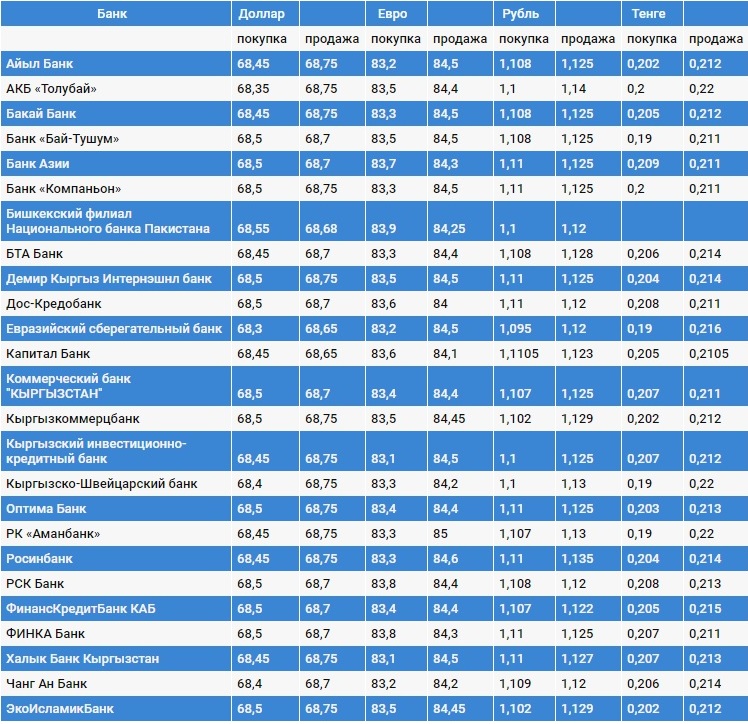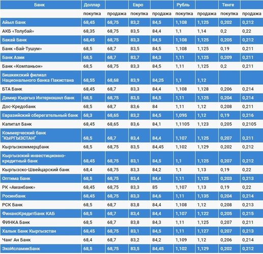 Курс доллара в коммерческих банках Кыргызстана на 25 апреля