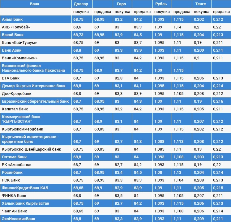 Курс доллара в коммерческих банках Кыргызстана на 27 апреля