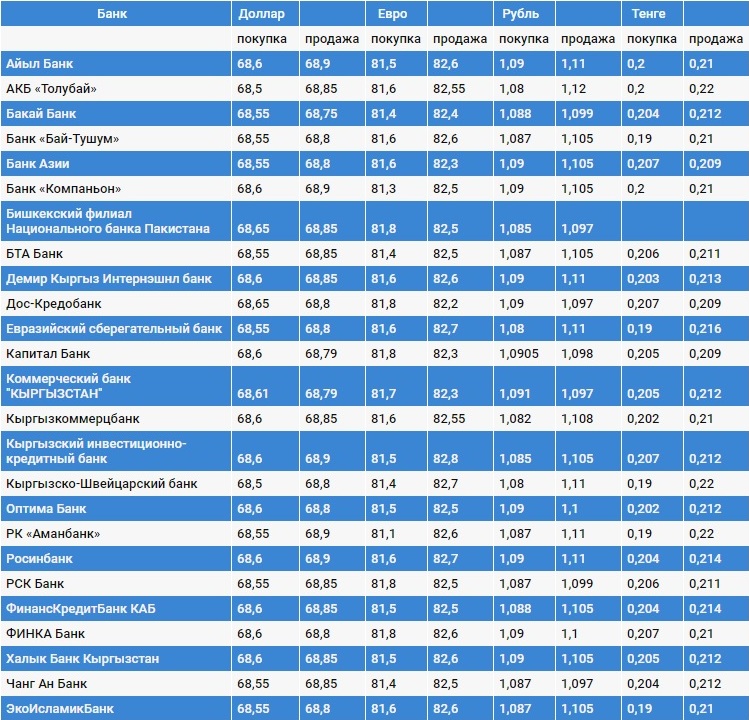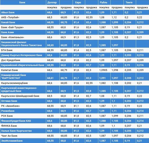 Курс доллара в коммерческих банках Кыргызстана на 8 мая