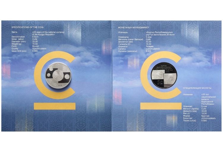Монету «25 лет национальной валюте Кыргызской Республики» выпустили для популяризации важнейших исторических событий, связанных с развитием кыргызской государственности.