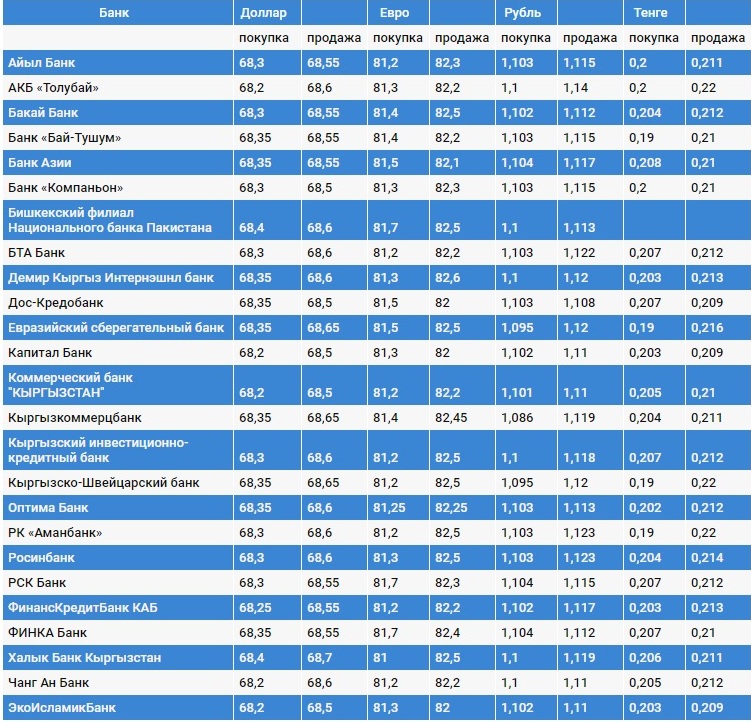 Курс доллара в коммерческих банках Кыргызстана на 15 мая