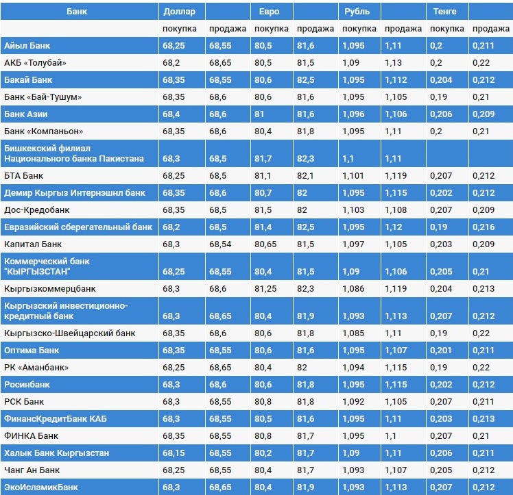 Курс доллара в коммерческих банках Кыргызстана на 16 мая