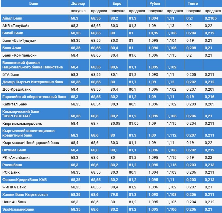Курс доллара в коммерческих банках Кыргызстана на 21 мая