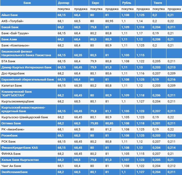 Курс доллара в коммерческих банках Кыргызстана на 23 мая