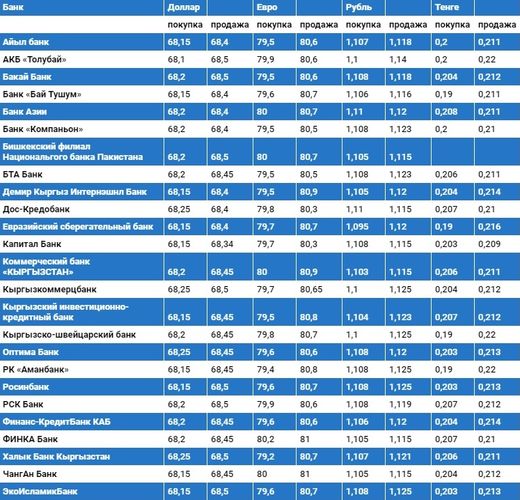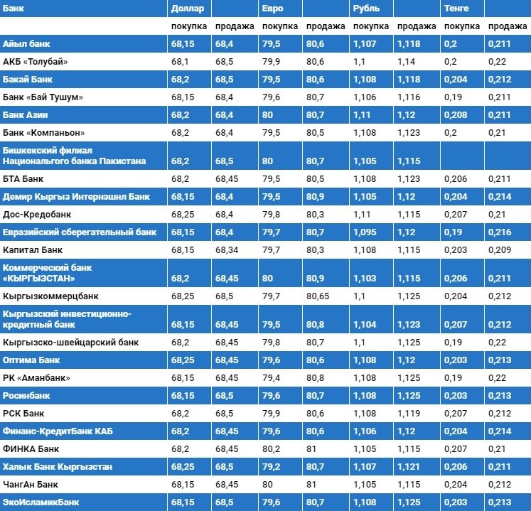 Курс доллара в коммерческих банках Кыргызстана на 24 мая