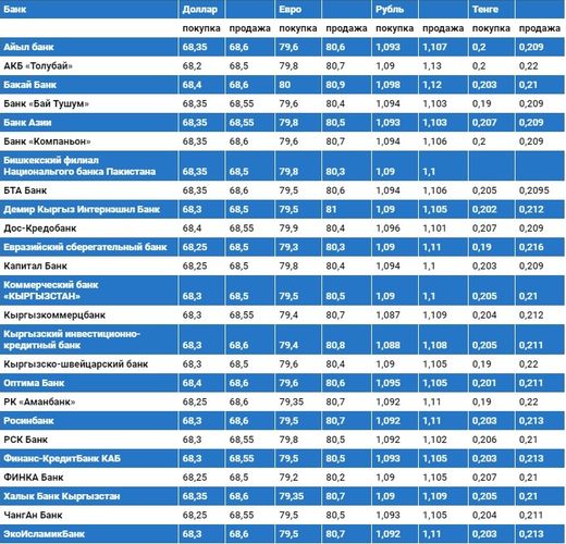Курс доллара в коммерческих банках Кыргызстана на 1 июня