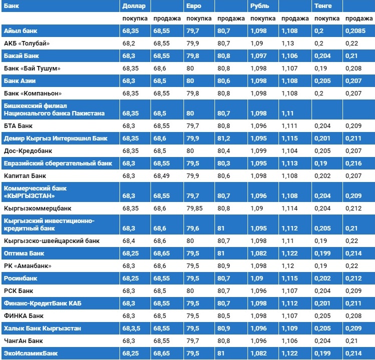 Курс доллара в коммерческих банках Кыргызстана на 6 июня