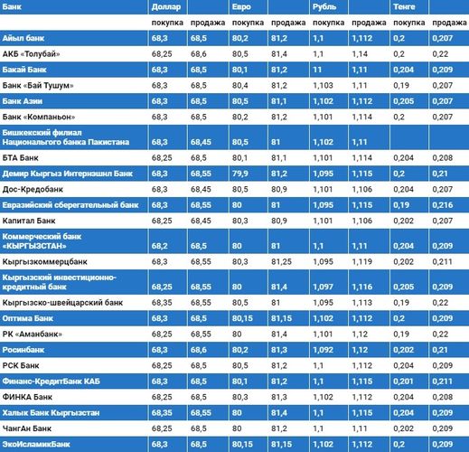 Курс доллара в коммерческих банках Кыргызстана на 7 июня
