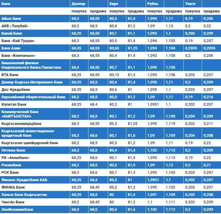 Курс доллара в коммерческих банках Кыргызстана на 8 июня