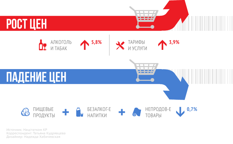 «Несмотря на то что в первом квартале повысили акцизы на табачные изделия и тарифы на услуги связи, слабая ценовая конъюнктура на мировых и региональных рынках продовольствия удерживала годовую инфляцию ниже целевого коридора. Отсутствие внешних шоков и стабильный курс национальной валюты создают предпосылки для сохранения слабого инфляционного фона в первые месяцы второго квартала», — объяснили ситуацию эксперты Евразийского банка развития.